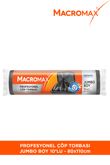 Macromax Profesyonel Çöp Torbası Jumbo Boy (80x110 cm) 10 Adet Ultra Dayanıklı Kalın Siyah Endüstriyel Poşet