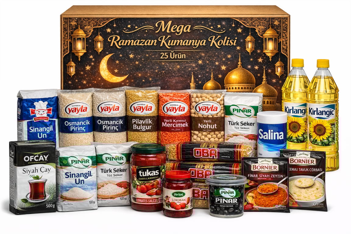 Bu Mega Ramazan Kumanya Kolisi, geniş ve zengin içeriğiyle günlük temel gıda ihtiyaçlarını eksiksiz karşılamak üzere hazırlanmış kapsamlı bir erzak paketidir. Çeşitli bakliyatlar, temel unlu mamuller, yağ, salça ve diğer hijyenik gıda ürünlerini bir arada sunar. Ramazan’da iftar-sahur destek paketi olarak, ihtiyaç sahiplerine yardım amacıyla veya toplu hediye seçimlerinde tercih edilebilecek bereketli ve değerli bir gıda kolisidir.