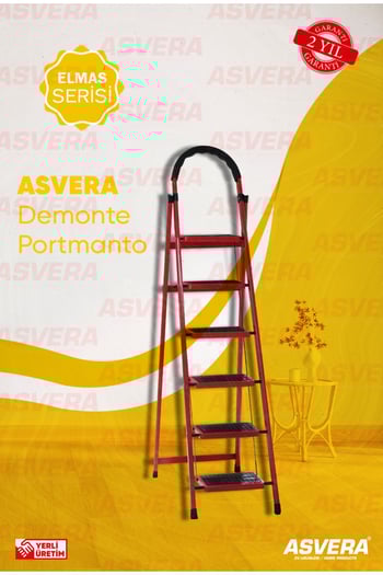 Elmas Serisi Carnaval 6’lı Ev Tipi Katlanır Merdiven – Kırmızı, Kaymaz, Hafif, Dayanıklı