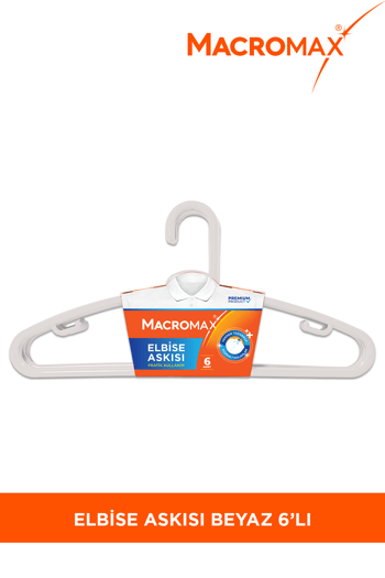 Macromax Elbise Askısı 6'lı Paket (Beyaz/Siyah) Düzenli Dolaplar İçin Pratik Kıyafet Askısı