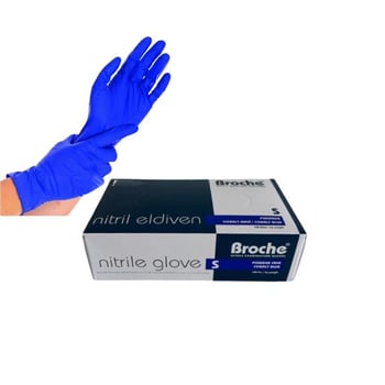 Broche Nitril Pudrasız Kobalt Mavi Muayene Eldiveni 100 Adet Small
