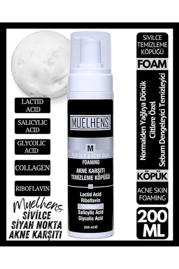 Muelhens Siyah Nokta, Sivilce ve Akne Karşıtı Cilt Temizleme Köpüğü 200 ml