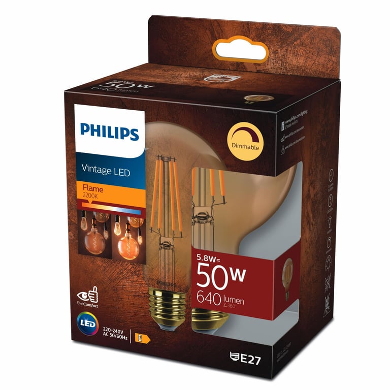 PHILIPS FILAMENT 50W GOLD AMBER GLOBE G95 DİMLENEBİLİR AMPUL SARI