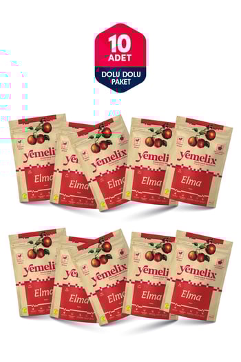 YEMELİX Freeze Dried 10'lu Dolu Dolu Paket Elma Kuru Meyve Cipsi - Dondurularak Kurutulmuş Elma 15Gx10