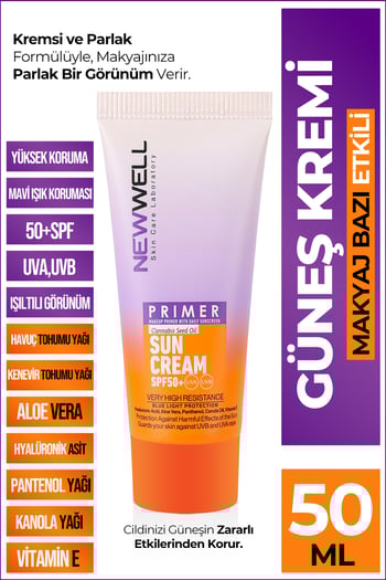 New Well Ton Eşitleyici Yüksek Koruma Etkili Spf50+ Aydınlatıcı Pembe Yüz Güneş Kremi 50 Ml