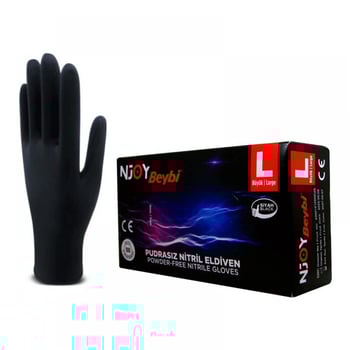 Beybi Njoy Siyah Pudrasız Nitril Eldiven 100'lü L Beden