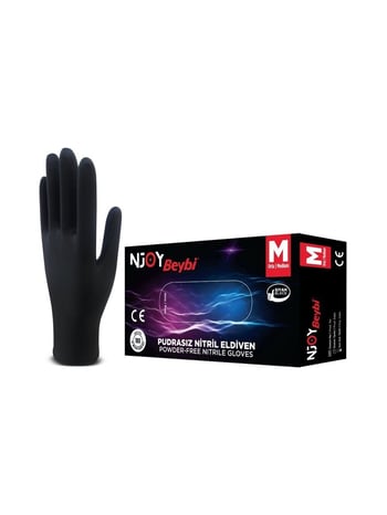 Beybi Njoy Siyah Pudrasız Nitril Eldiven 100'lü M Beden