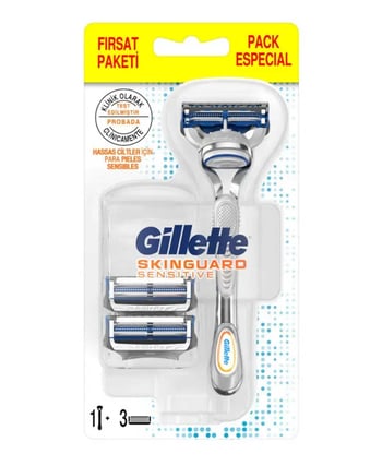 Hassas teni tahriş etmeden tıraş edebilecek biçimde geliştirilen Gillette Skinguard Sensitive Tıraş Makinesi kayganlaştırıcı bantlara, takılma ve çekilmeyi engelleyen bıçak yerleşimine ve daha iyi bir tıraş için düzeltici bıçağa sahiptir.