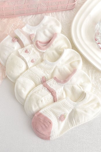 BGK 5 Çift Kadın Kabartmalı Çiçek Görünmez Çorap 36-41