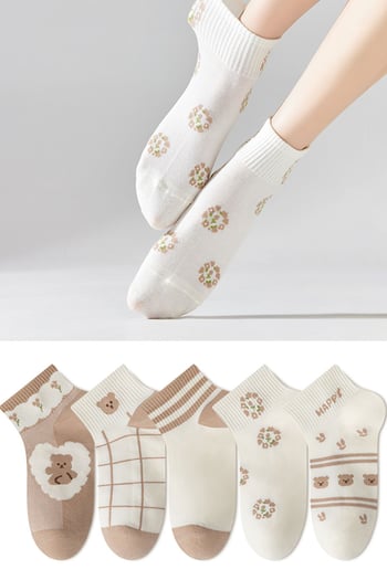 BGK 5 Çift Kadın Bej Happy Desenli Çorap 36-41