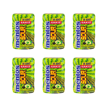 Mentos Sour Yeşil Elma Aromalı Şekersiz Tatlandırıcılı Ekşi Draje Sakız 56 G X 6 Adet