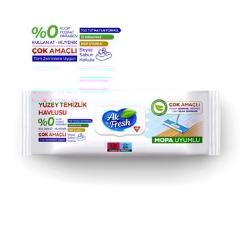Akfresh Yüzey Temizlik Havlusu 48’li, beyaz sabun kokusu ile yüzeylerde hijyen ve ferahlık sağlar. Pratik kullanım, etkili temizlik!