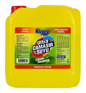 Kuzey Çamaşır Suyu Ultra Limon Ferahlığı 3,5 lt, güçlü hijyen ve beyazlatma etkisiyle derinlemesine temizlik sağlar. Ferah limon kokusu sayesinde temizlik sonrası ortamda uzun süre tazelik hissi bırakır. Büyük hacmiyle ekonomik kullanım sunar.