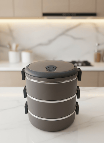 Yazıcı Ticaret İthalat & İhracat güvencesiyle geliştirilen **FreshBox Özel Seri**, tamamen **yerli üretim**, premium malzeme ve fonksiyonel tasarımı bir araya getiren, Türkiye’de kendi segmentinde **tek özel seri** yemek termosudur. Paslanmaz çelik iç haznesi ve vakumlu sızdırmaz kapağı sayesinde yemekleri **1–2 saat sıcak veya soğuk** tutar. Modüler yapısıyla tek ya da çift katlı kullanılabilir, **BPA’sız** ve hijyeniktir. Cappuccino renkleriyle hem şık hem pratiktir. Evde, işte ve yolculukta güvenle kullanılır.