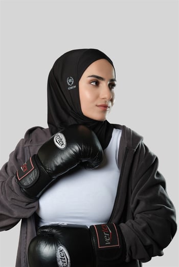 Hürrem Bone Siyah Tesettür Balıkçı Yakalı Boyunluklu Kolluk Viskon Düz 1025_01