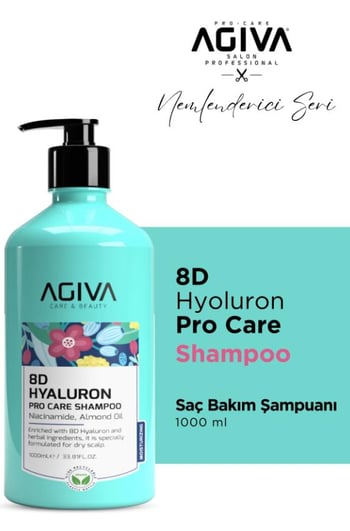 Agiva 8D Hyaluron Pro Care Niacinamid, Badem Yağı İçeren Bakım Şampuanı 1000 ml