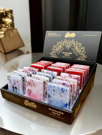 Şık tasarımlı, kullanışlı Sasta Lüks Cep Aynası; 96 adetlik stand ambalajıyla toptan satış ve sergileme için idealdir.