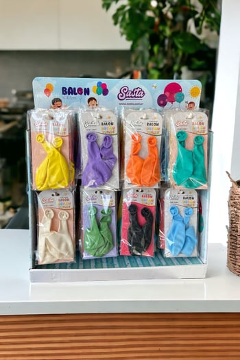Sasta Lüks Balon Seti, 324 adetlik stand ambalajıyla çocuklara özel renkli ve eğlenceli tasarımlar sunar.