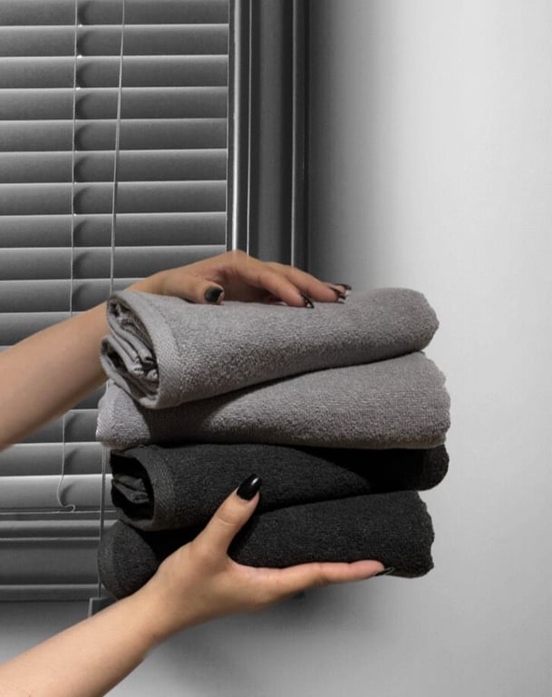 2 adet gri + 2 adet siyah Toplam 4 adet havlu Ebat 50x90cm Eponj (düz havlu) desensiz Berber ve otel havlusu içinde kullanılır