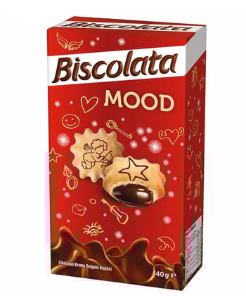 Şölen Biscolata Mood Sütlü Çikolatalı 125 Gr uygun bisküviler ve tazecik enfes çikolatayla buluşturulmuş figürlere sahip çikolata dolgulu bisküviyi yerken eğleneceksiniz.