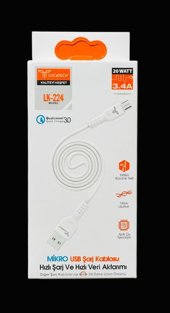 Lucatech LK-224 USB Mikro Şarj Kablosu 3.4A 20 WATT