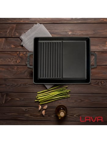 Lava Hibrit Yekpare Çift Kulplu Dikdörtgen 26x32 cm Döküm Izgara Tava