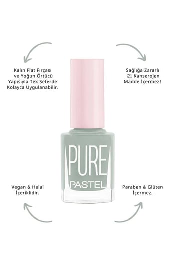 • Pastel pure oje 608>açık ve hafif tonlarıyla tırnaklarda sade bir görünüm yaratır.