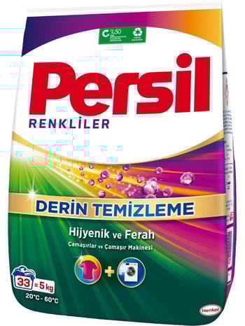 Persil Toz Çamaşır Deterjanı kumaşın rengini korur, solmayı ve yıpranmayı önleyerek etkili hijyen ve temizlik sağlar.