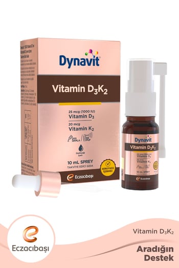 Dynavit Vitamin D3K2 Nedir?: Dynavit Vitamin D3K2; Vitamin D3 ve Vitamin K2 içeren sprey takviye edici gýda.